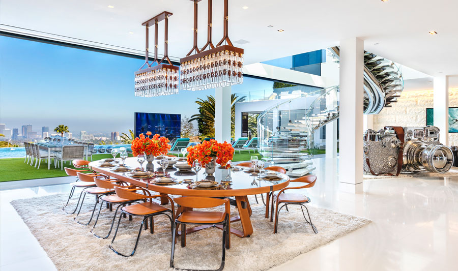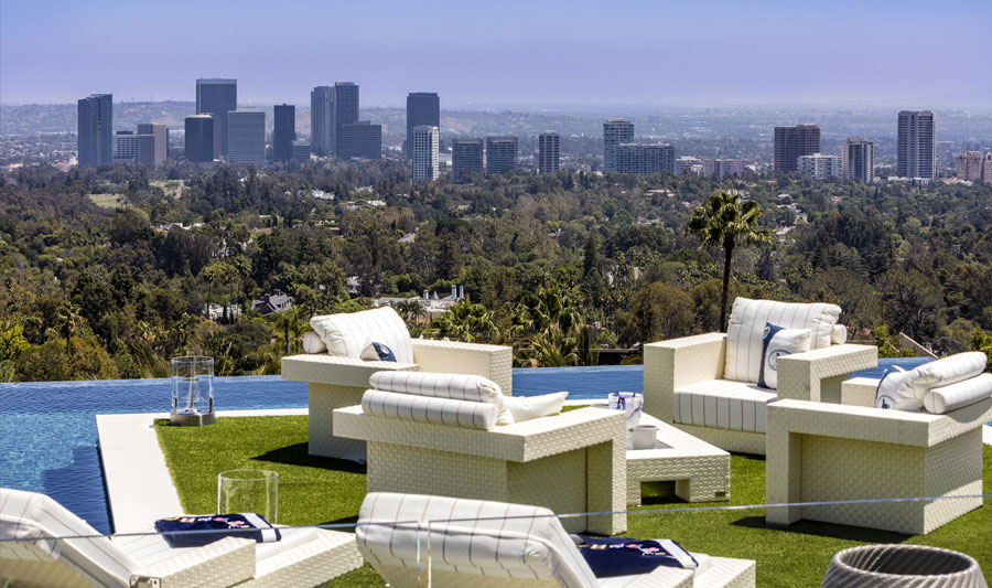 This exquisite residence delivers an unimaginable indoor/outdoor nirvana enhanced by unobstructed 270-degree views spanning from the mountains all the way to the ocean and across the incredible Los Angeles skyline in-between.